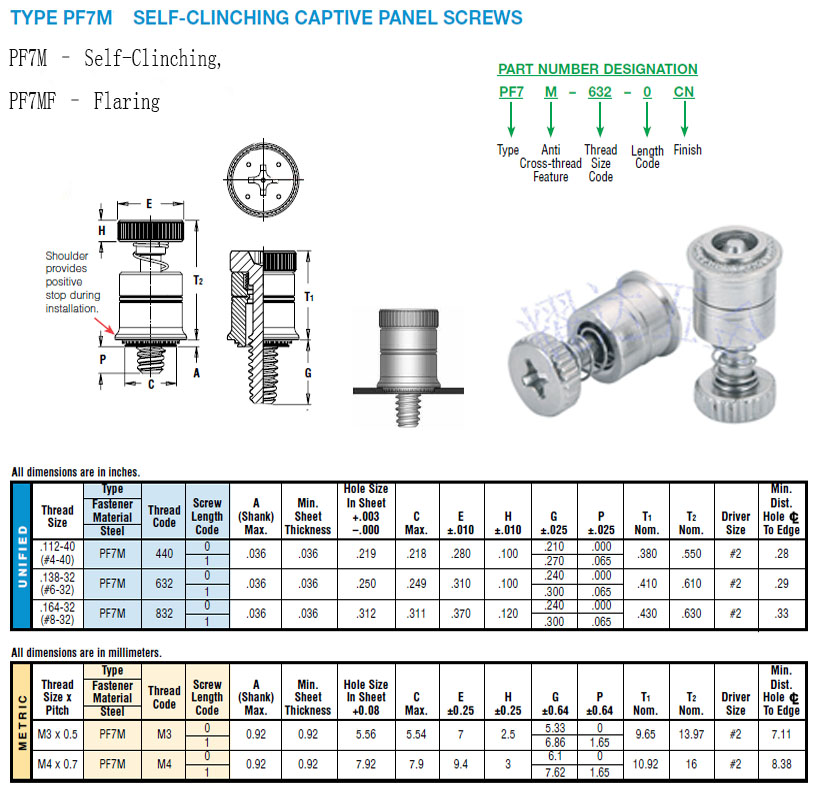 Captive Panel Screw, Screw Head, Spring-loaded, Self-Clinching - Unified Type PF7M