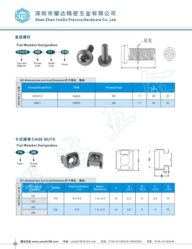 皇冠螺釘,材質(zhì)有鐵鍍鎳 、不銹鋼,規格:M5 M6,長(cháng)度16-40mm. 皇冠螺釘CHDS-M5-17