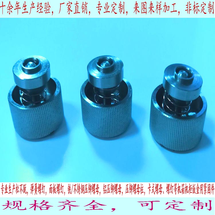 松不脫螺釘又稱(chēng)松不脫彈簧螺釘,面板螺釘,面板緊固件,松不脫彈簧螺釘和普通螺釘不同。它是由多個(gè)部件組合而成,中間采用一根彈簧相聯(lián),所以在大多數時(shí)候都被稱(chēng)為彈簧螺釘。在鉚壓安裝后擰入或擰出螺紋占用很小的空間,可填補基體配合孔之間的安裝誤差。因其頭部也有直紋的滾花設計,頭部采用精密設備開(kāi)出一字槽或十字槽。無(wú)刀痕,無(wú)毛刺。安裝時(shí)手工旋入或采用一字螺絲刀都可以.材料碳鋼鍍鋅和不銹鋼或產(chǎn)品局部注塑。適用于鈑金,薄板,機箱,機柜,通訊設備上的緊固件產(chǎn)品。是卡入/壓鉚或漲鉚在安裝板上,通過(guò)螺釘緊固板與板的位置。